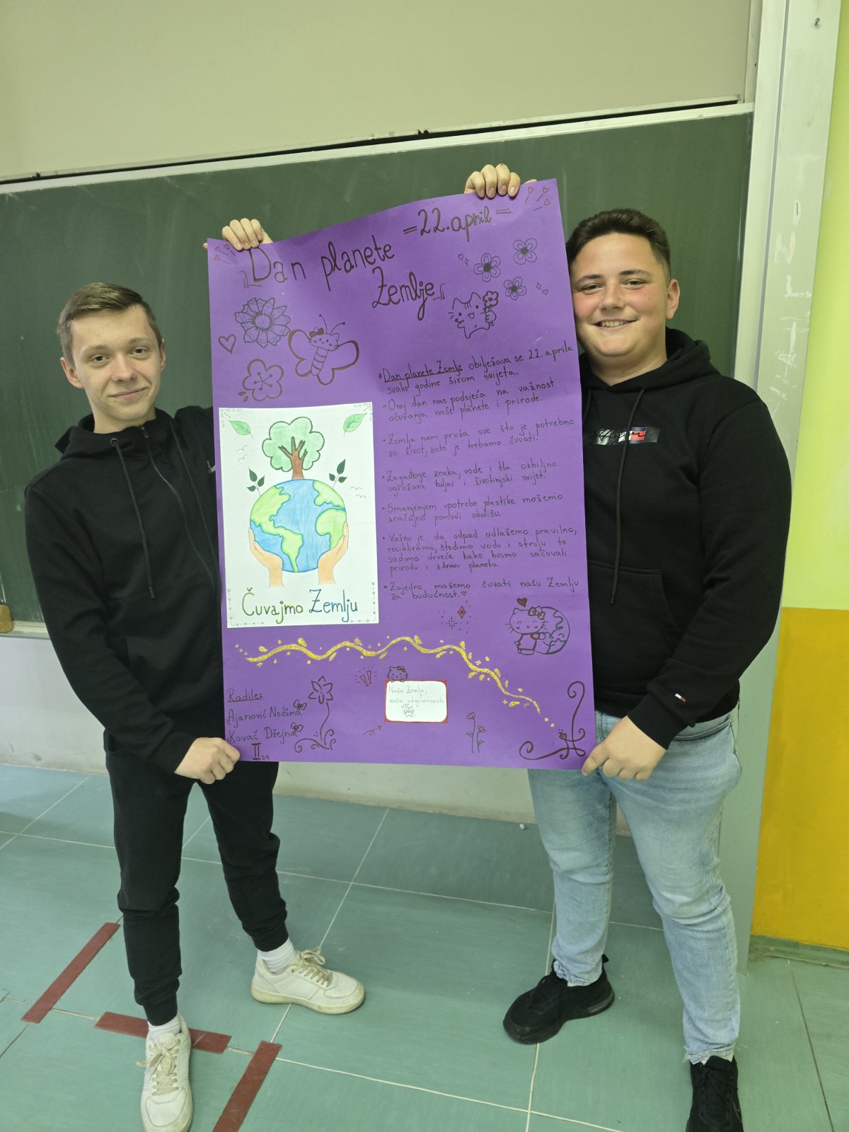 Pored takmičarskog dijela, učenici odjeljenja II3/4 su kroz pripremu prezentacije i izradu tematskih panoa na kreativan i vizuelno upečatljiv način poslali snažne ekološke poruke, naglašavajući važnost očuvanja životne sredine i naše planete.